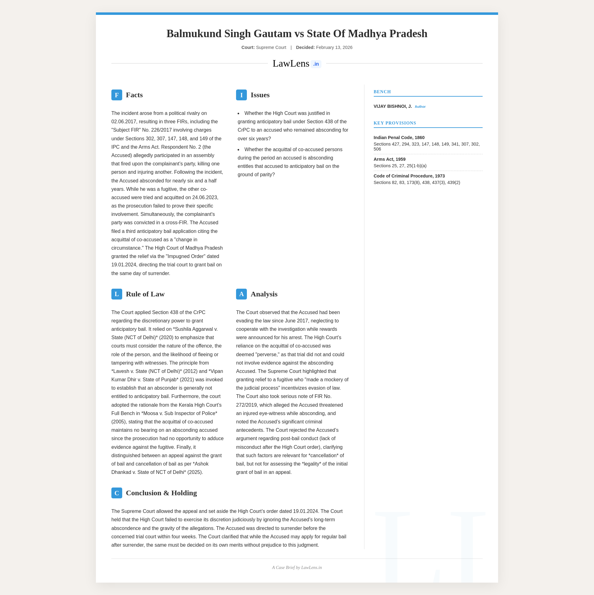 Balmukund Singh Gautam v. State of Madhya Pradesh 2026 INSC 157 - Anticipatory Bail - Absconding Accused