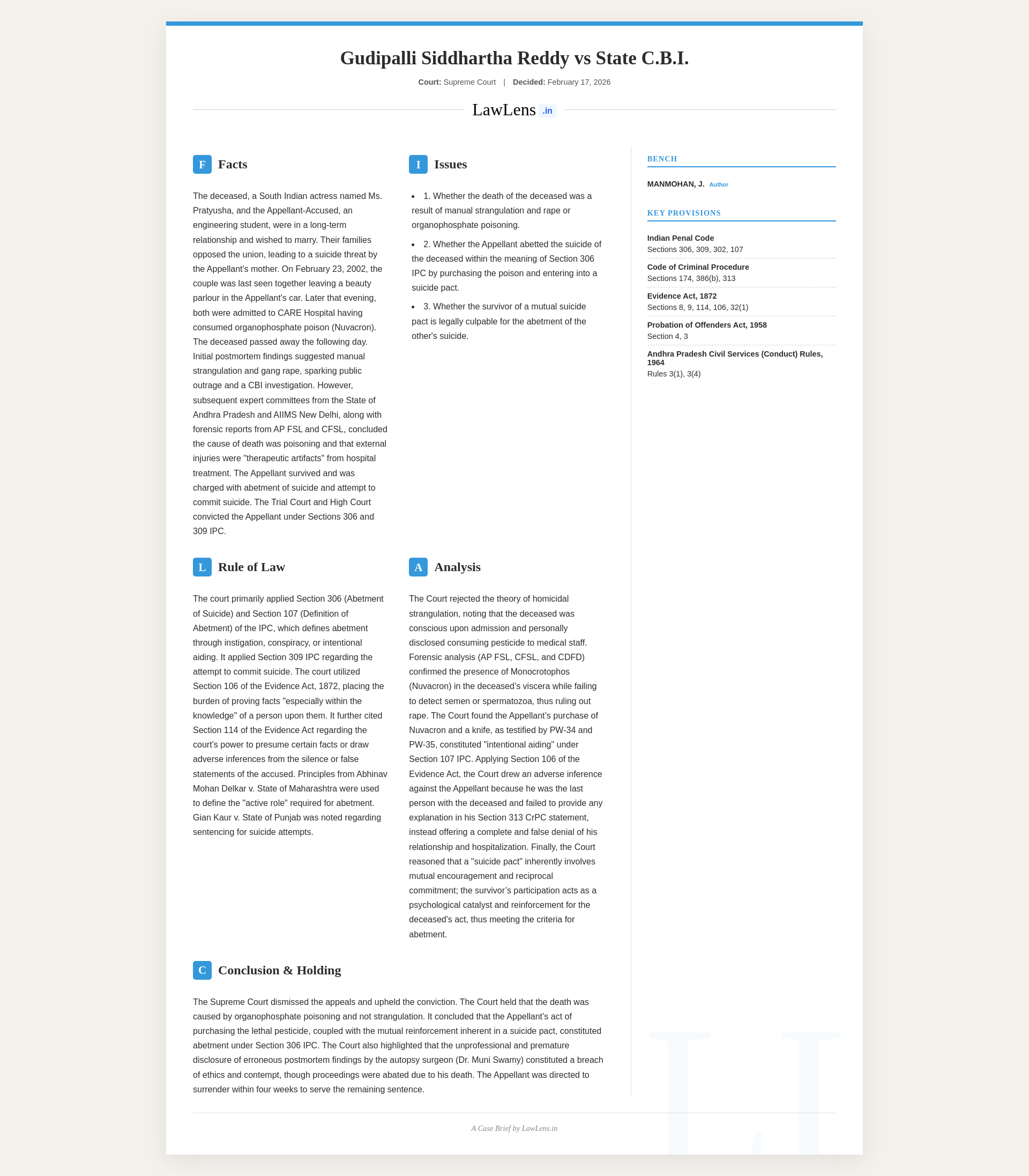 Case name and neutral citationGudipalli Siddhartha Reddy v. State C.B.I., 2026 INSC 160