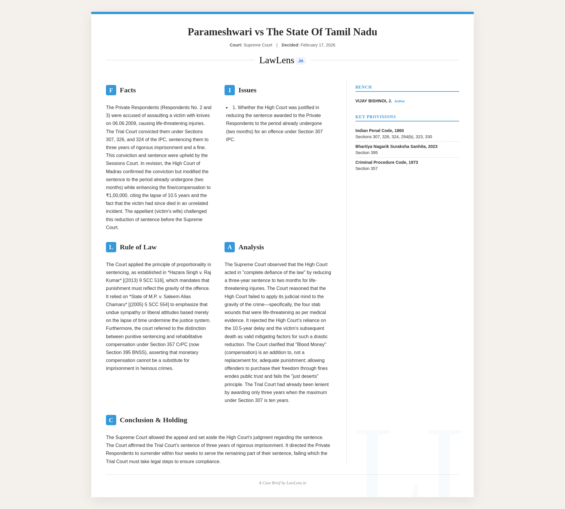 Parameshwari v. State of Tamil Nadu 2026 INSC 164 - Sentencing - Victim Compensation