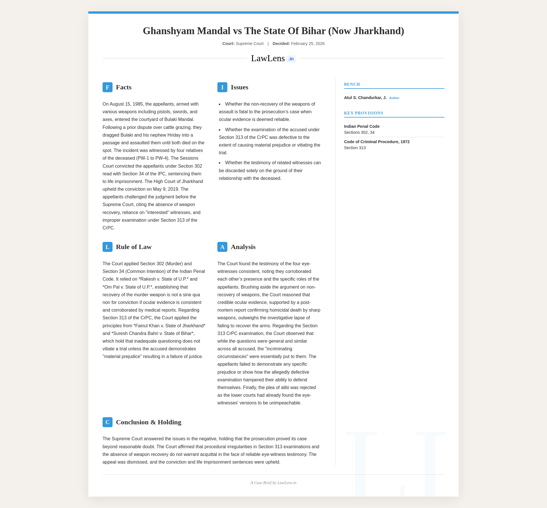 Case name and neutral citation:Ghanshyam Mandal and Ors. v. The State of Bihar (now Jharkhand), 2026 INSC 194
