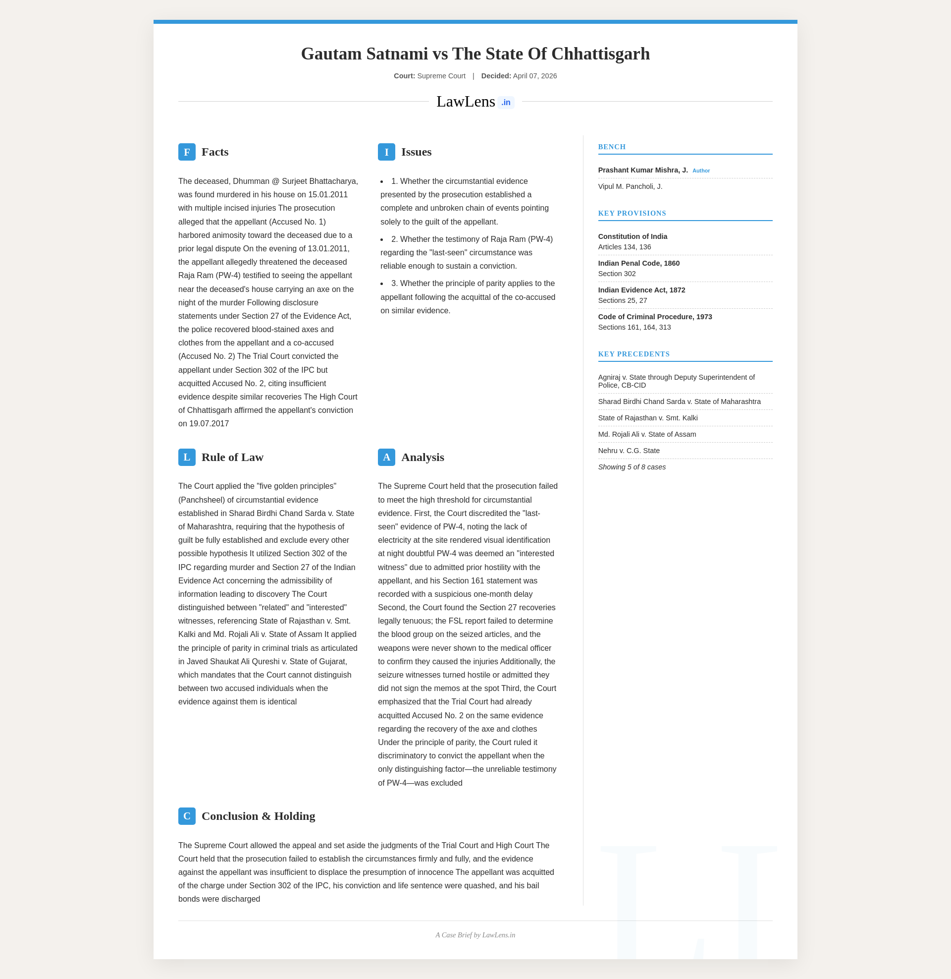 Case name: Gautam Satnami @ Gautam Deshlahre v. State of Chhattisgarh