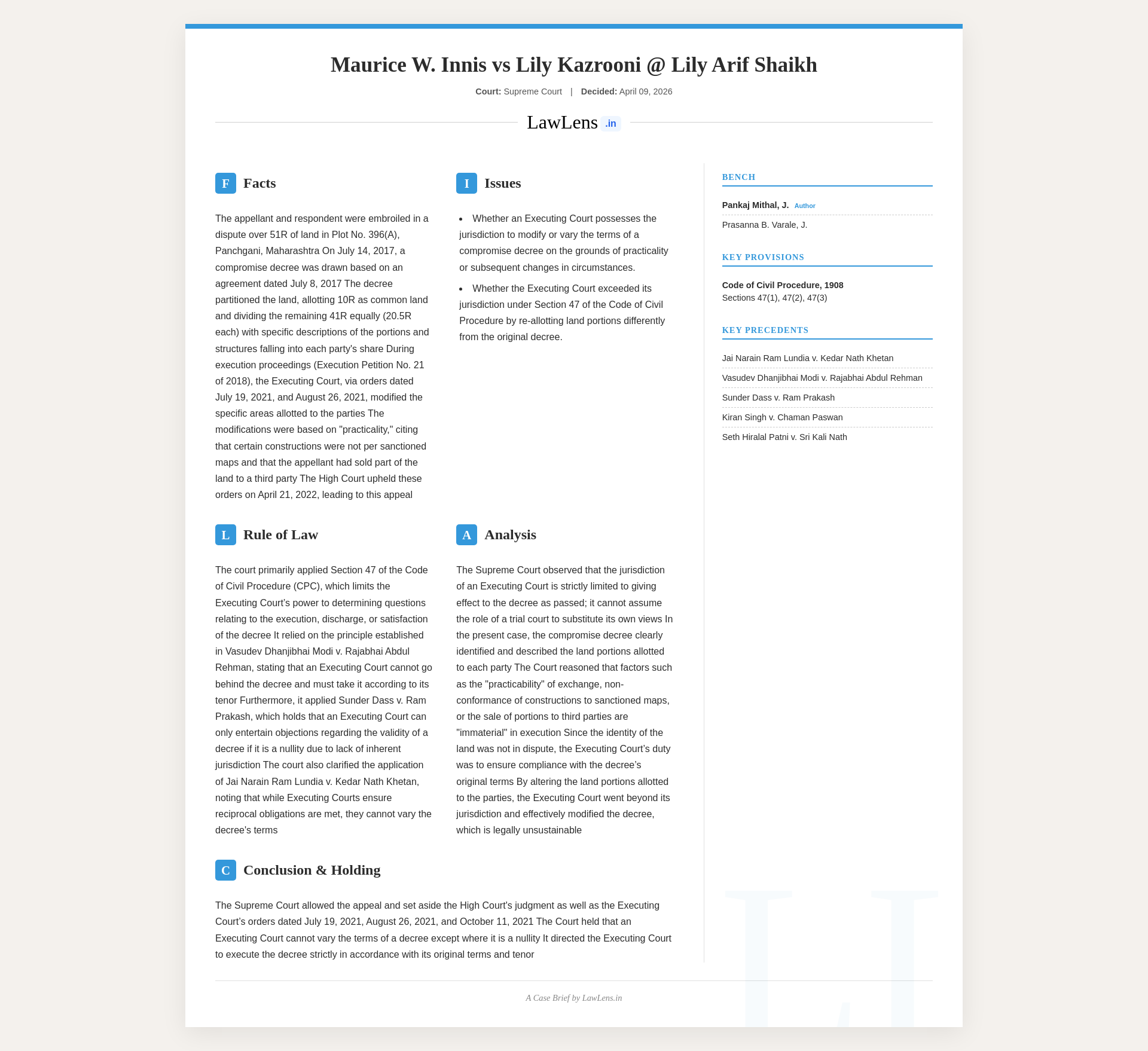 Case name and neutral citation:Maurice W. Innis v. Lily Kazrooni @ Lily Arif Shaikh, 2026 INSC 340.