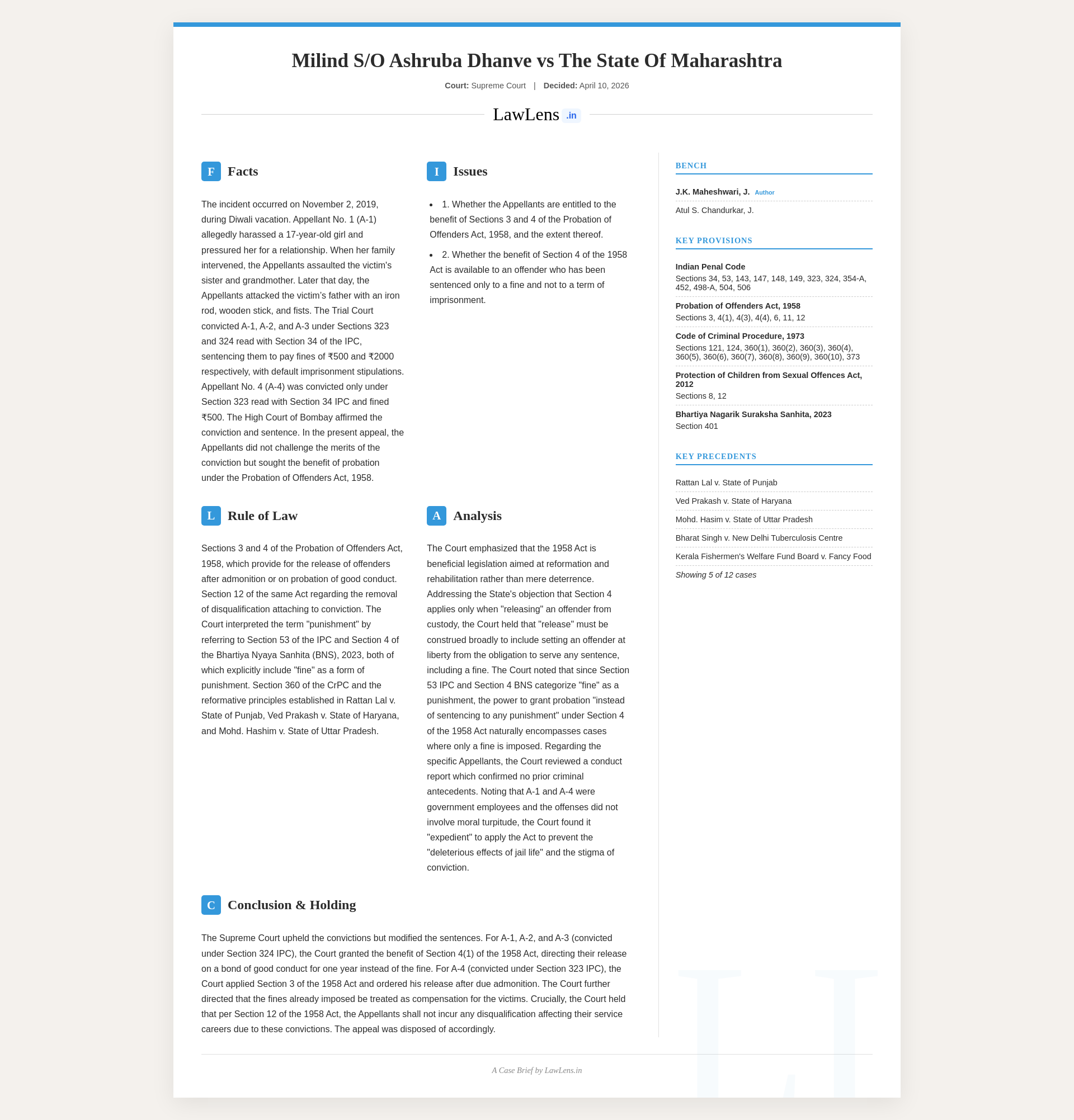 Milind Ashruba Dhanve v. State of Maharashtra 2026 INSC 355 - Probation of Offenders Act - Fine