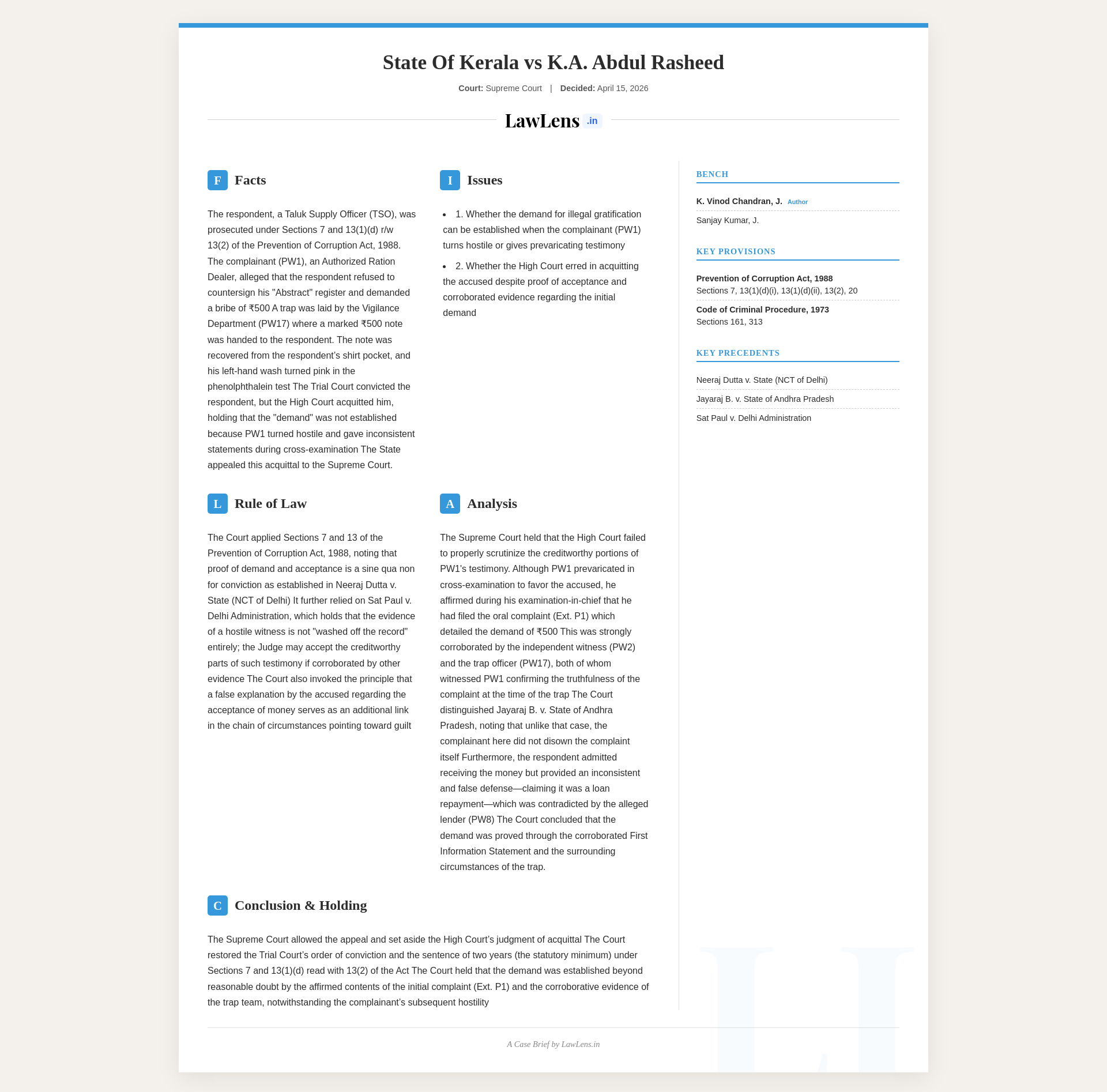 State of Kerala v. K.A. Abdul Rasheed 2026 INSC 365 - Prevention of Corruption Act