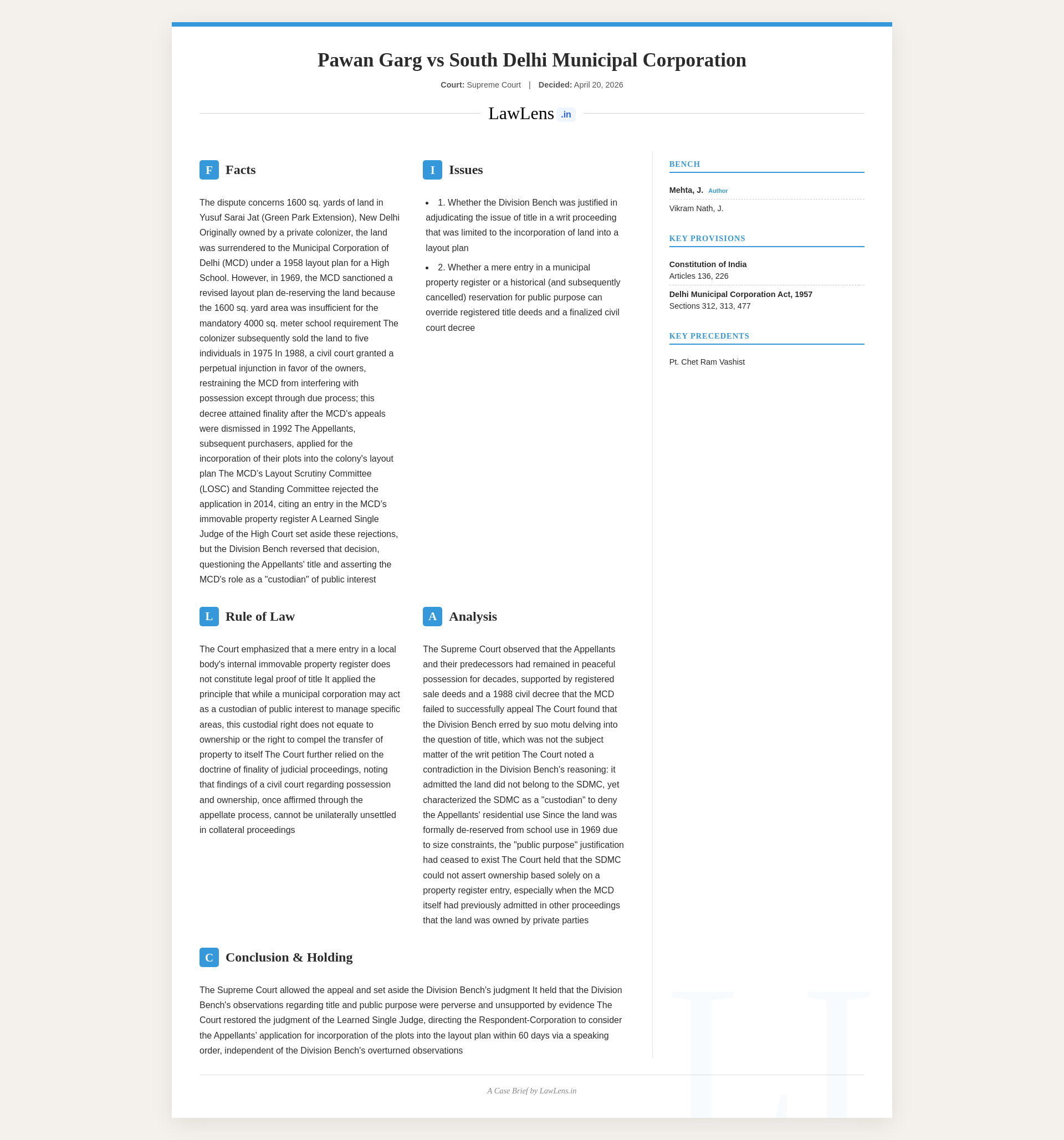 Case name and neutral citation:Pawan Garg & Ors. v. South Delhi Municipal Corporation, 2026 INSC 389