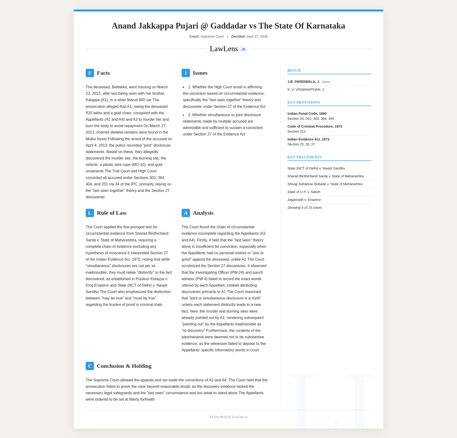 Case name and neutral citation:Anand Jakkappa Pujari @ Gaddadar v. State of Karnataka; Mahadev Sidram Hullolli v. State of Karnataka, 2026 INSC 417