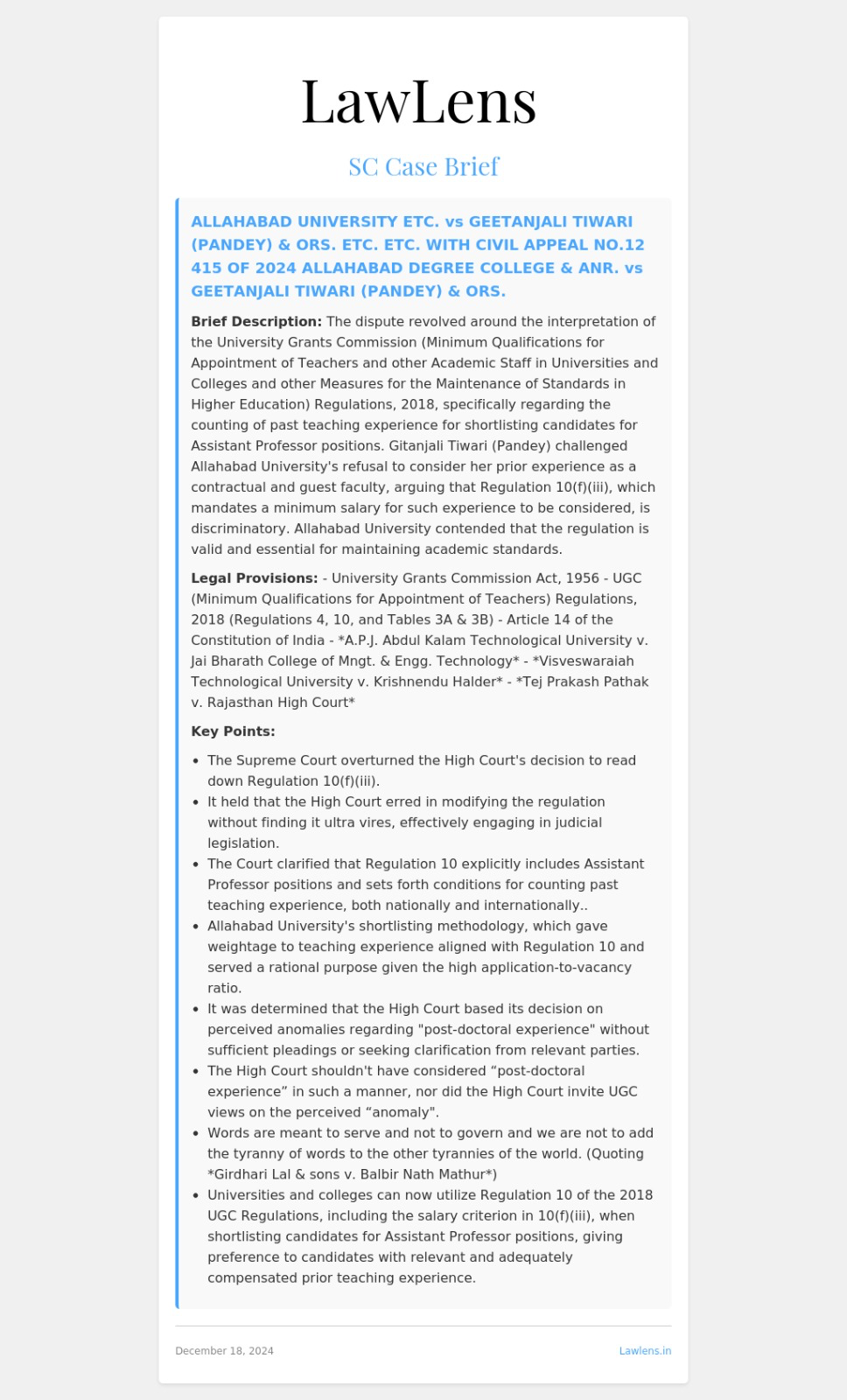 Allahabad University Geetanjali Tiwari (Pandey) 2024 INSC 1003- UGC Regulations - Interpretation Of Statutes - Writ Petition - Pleadings