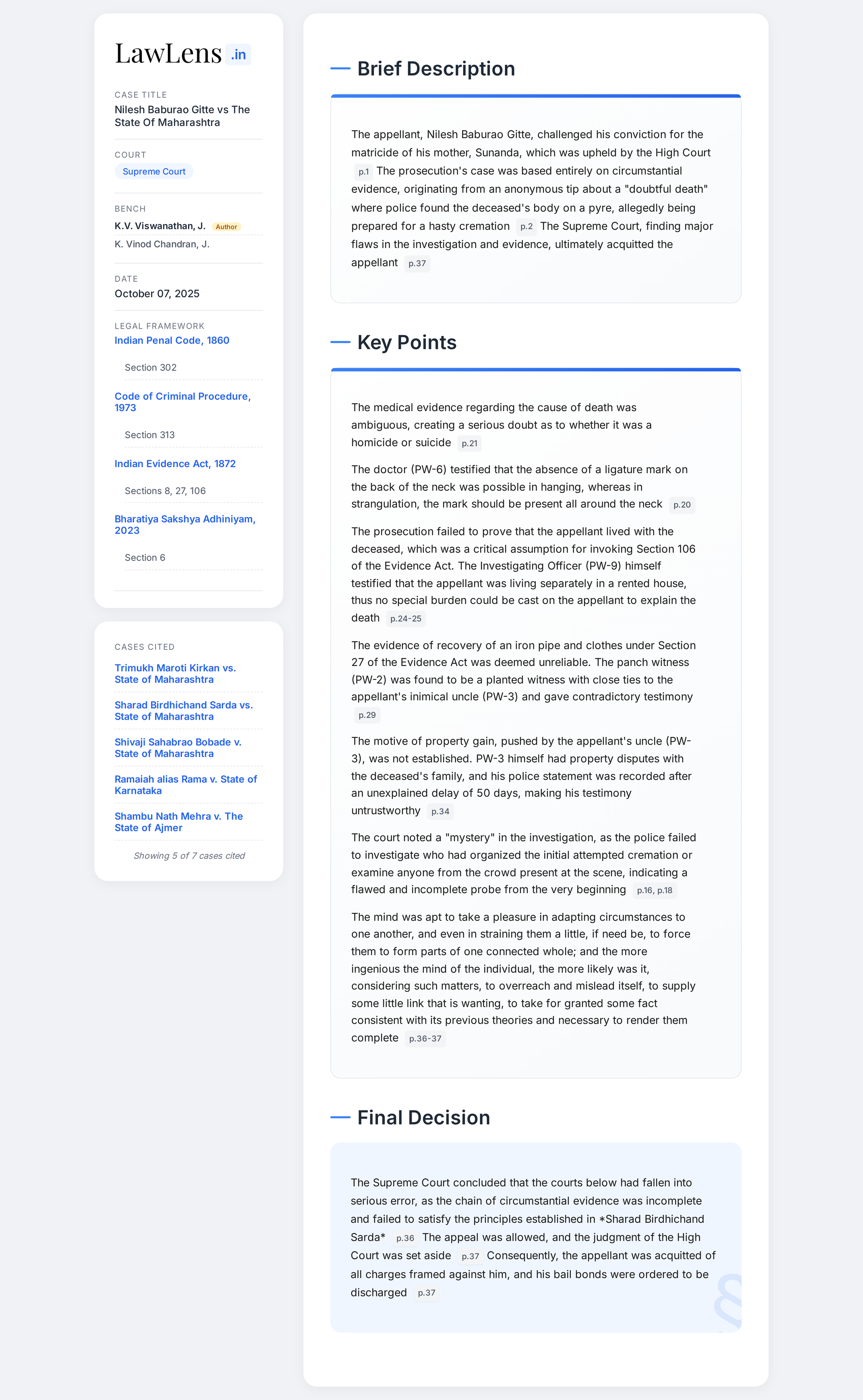 Nilesh Baburao Gitte v. State of Maharashtra 2025 INSC 1191 - Criminal Trial - S.106 Evidence Act