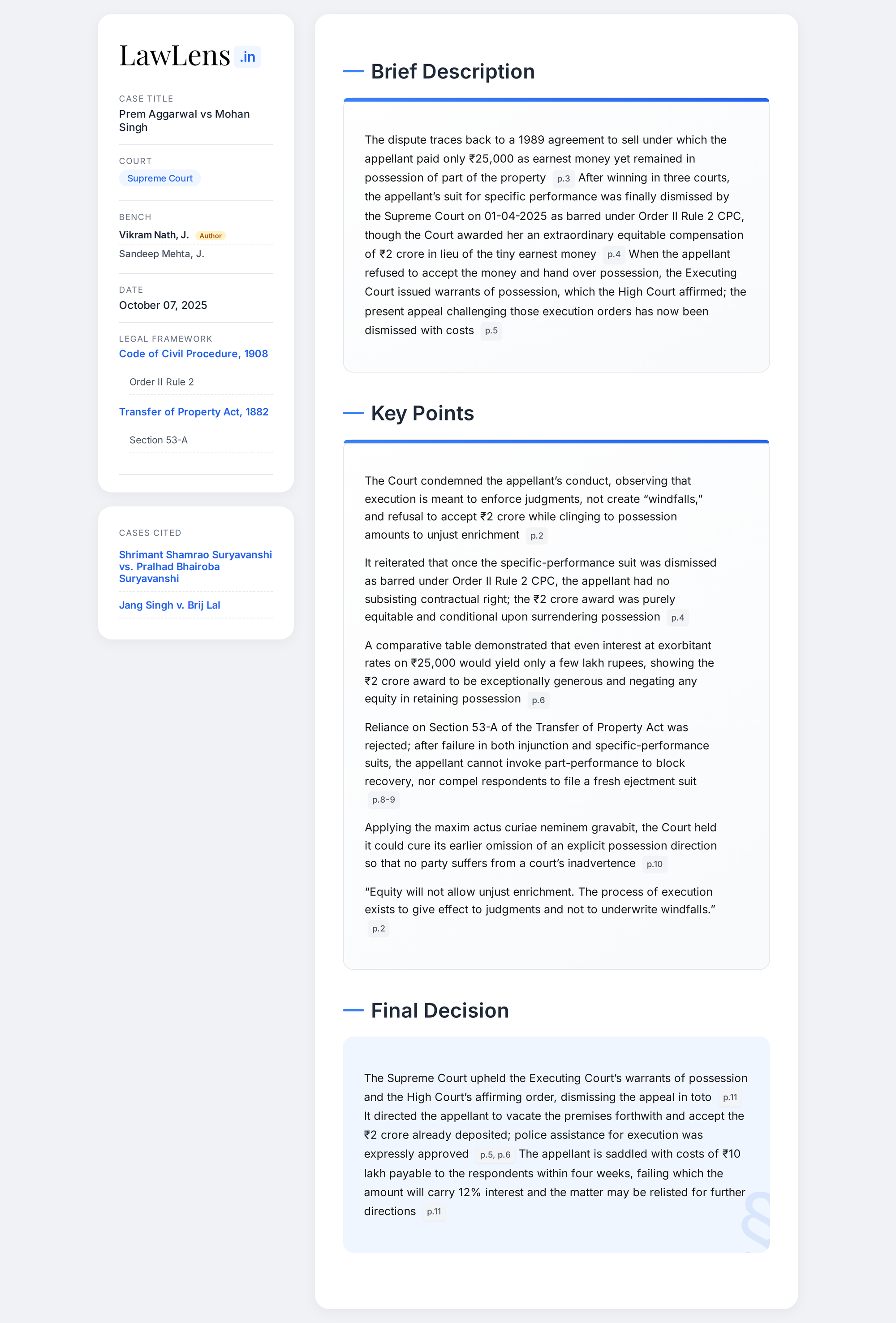 Prem Aggarwal v. Mohan Singh 2025 INSC 1214 - Actus Curiae Neminem Gravabit