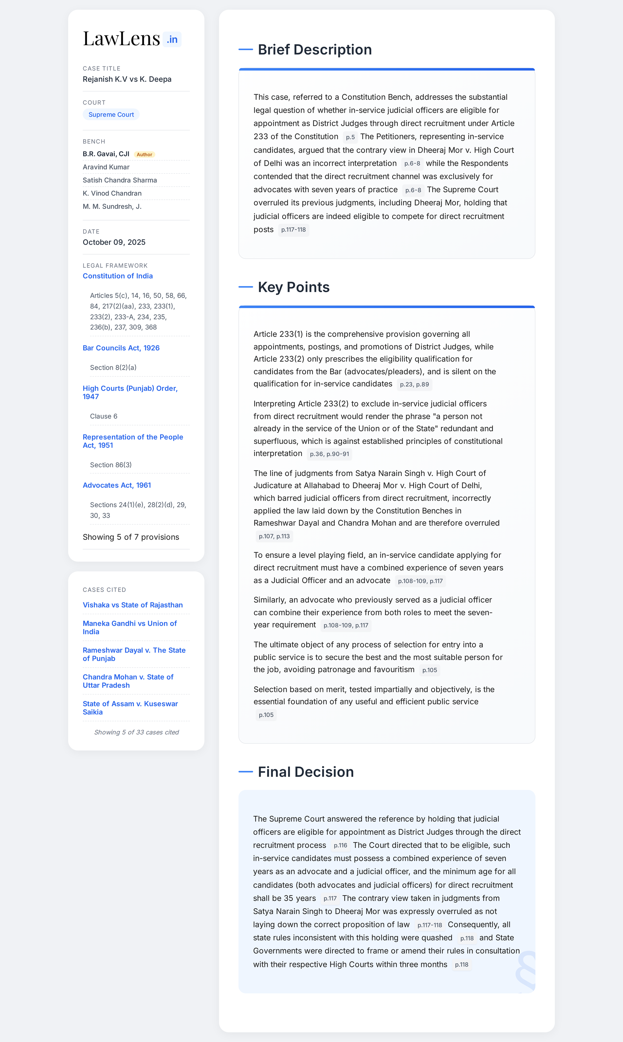 Rejanish KV vs K Deepa 2025 INSC 1208 - Art. 233 Constitution - District Judge Recruitment - Judicial Officers