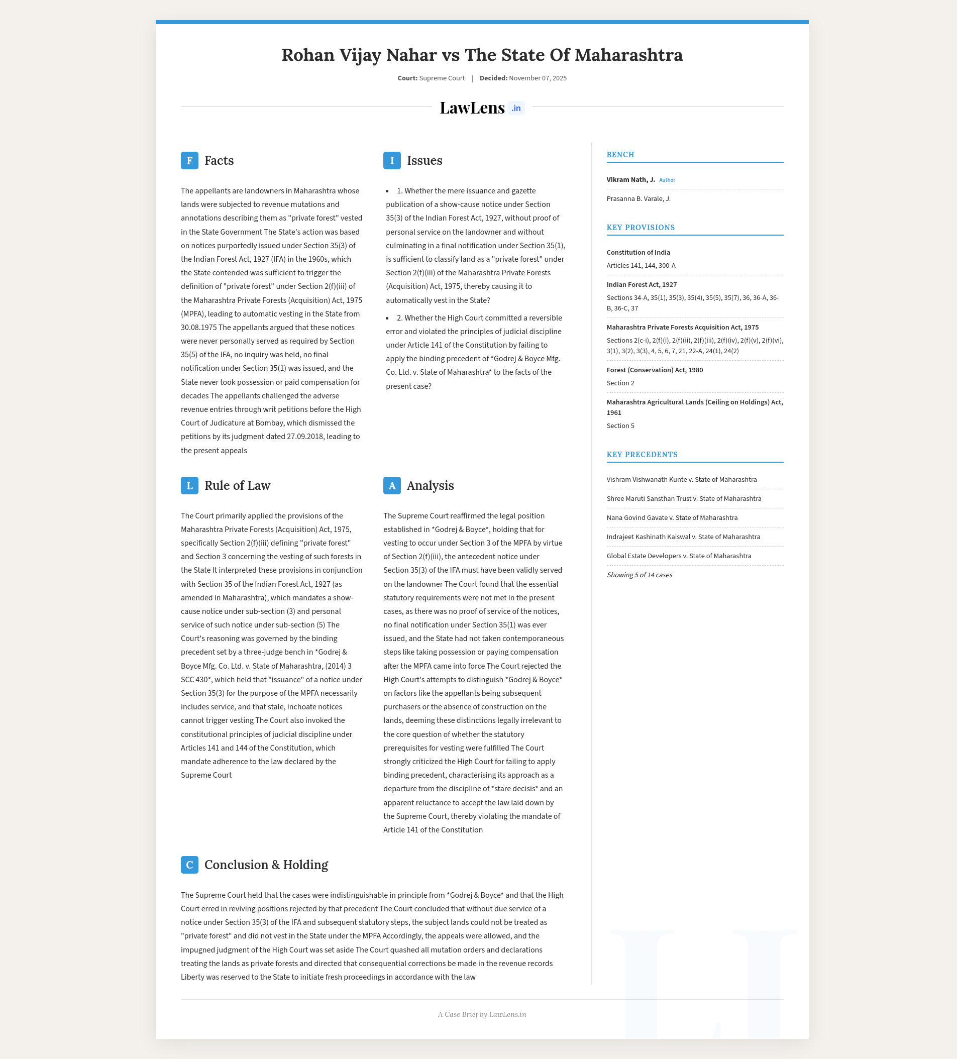Rohan Vijay Nahar vs State of Maharashtra 2025 INSC 1296 - Precedent - Precedent - Judicial Discipline - Forest