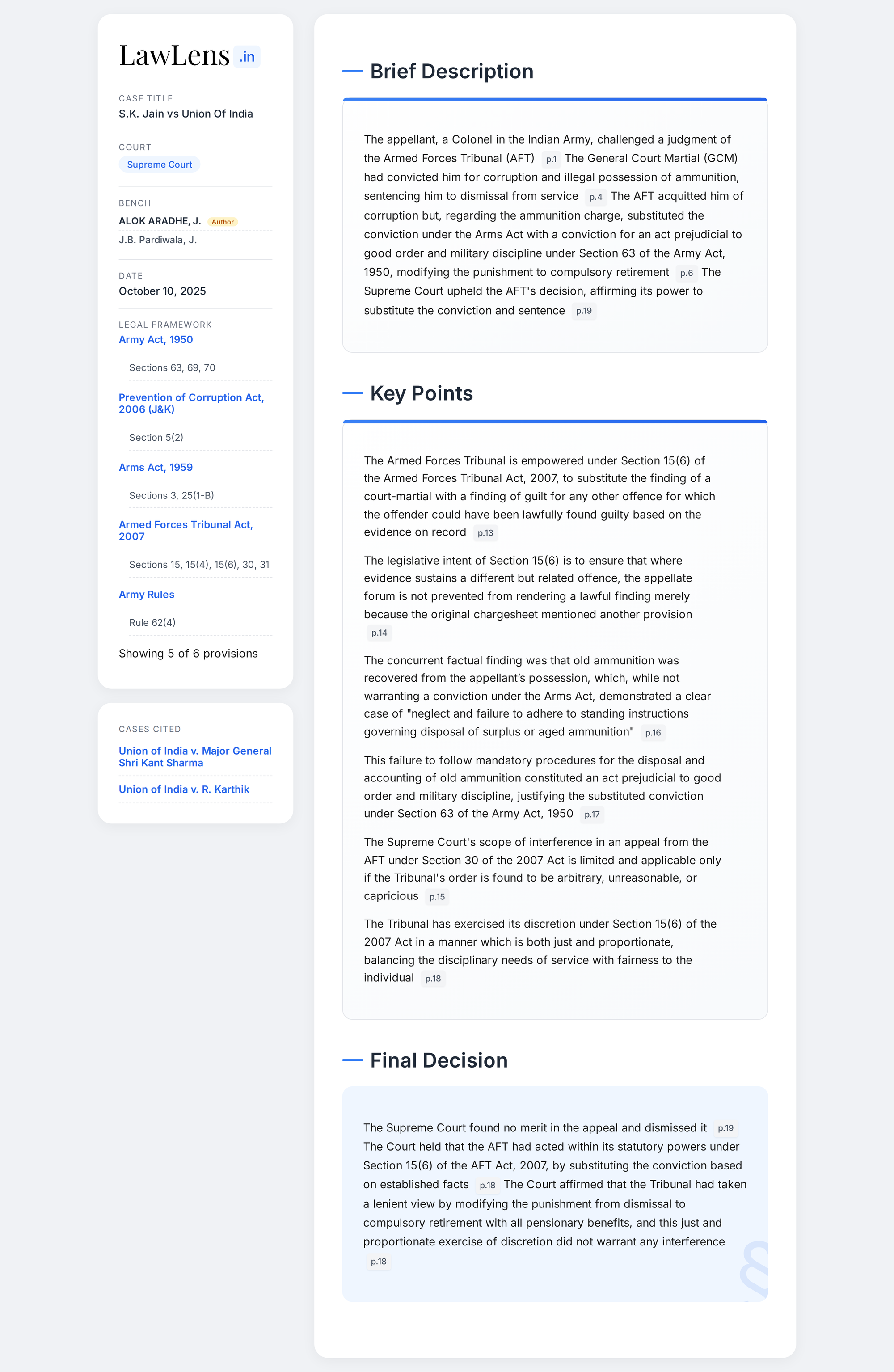 S.K. Jain vs Union of India 2025 INSC 1215 - AFT - Army Act - Court Martial