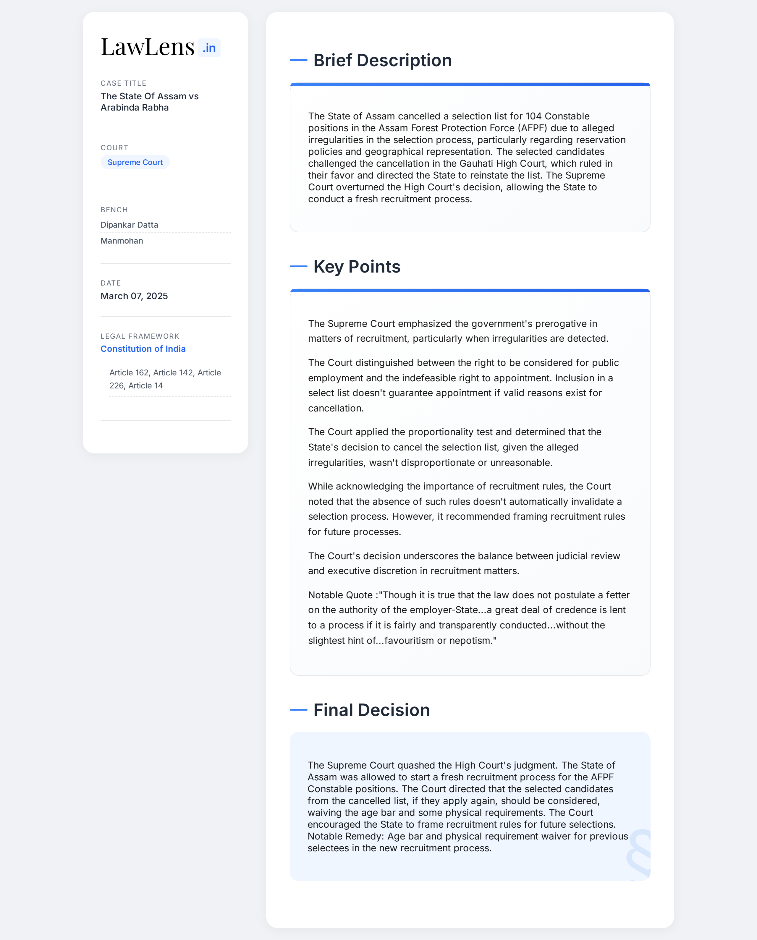 State Of Assam vs Arabinda Rabha 2025 INSC 334 - Public Employment