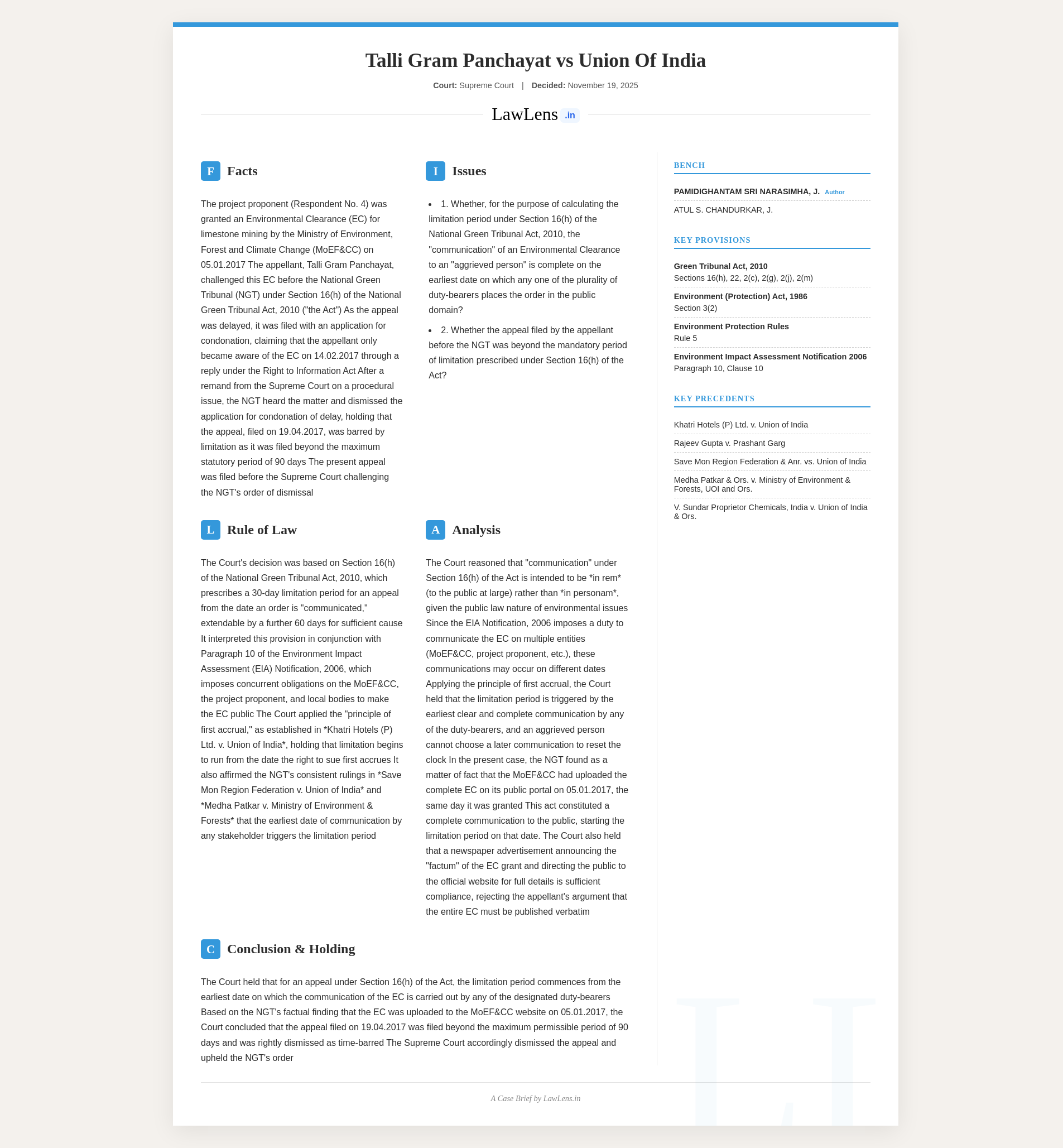 Talli Gram Panchayat vs Union of India; 2025 INSC 1331 - NGT Act - Limitation