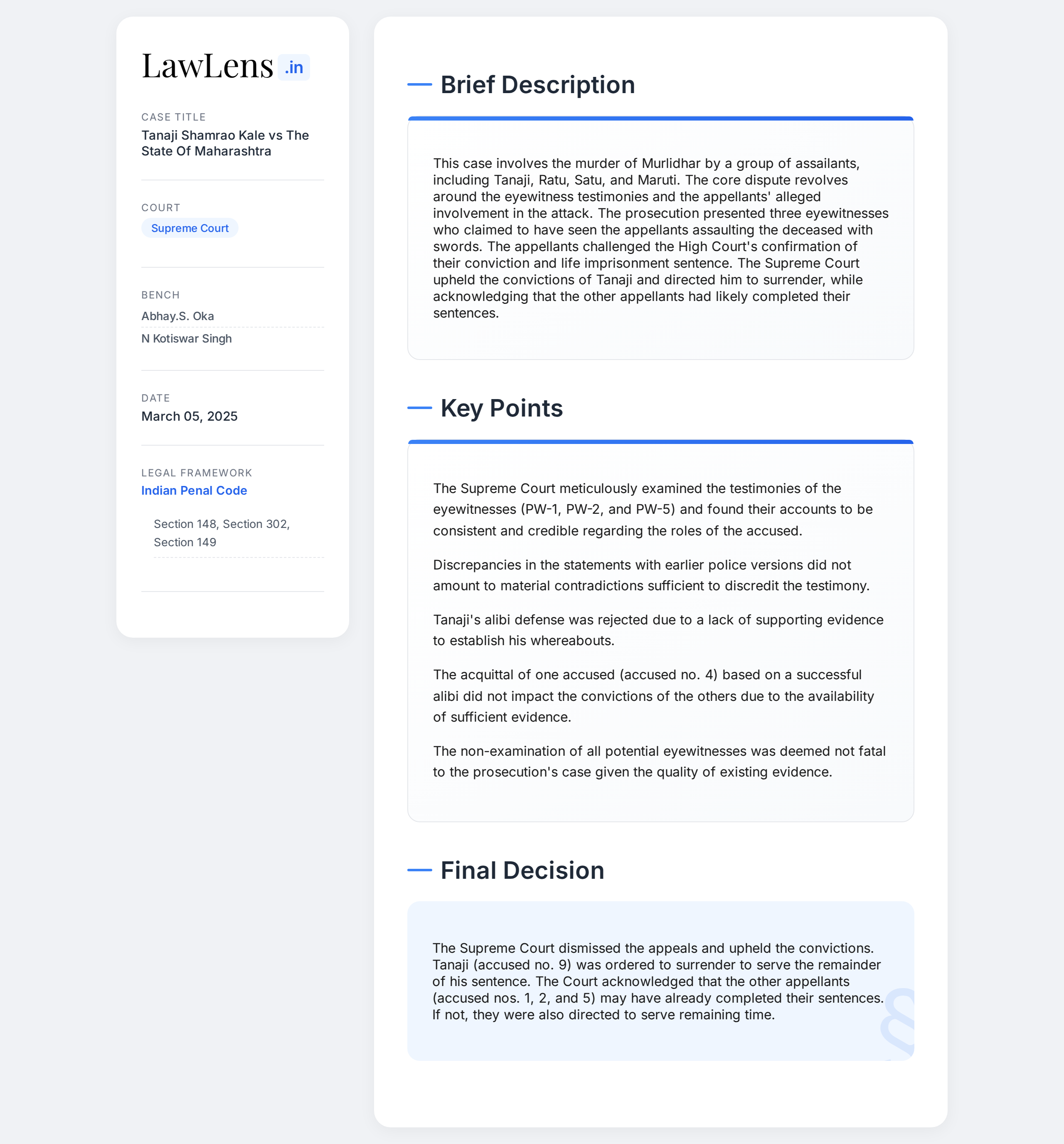 Tanaji Shamrao Kale vs State Of Maharashtra 2025 INSC 323 - Murder Conviction Upheld