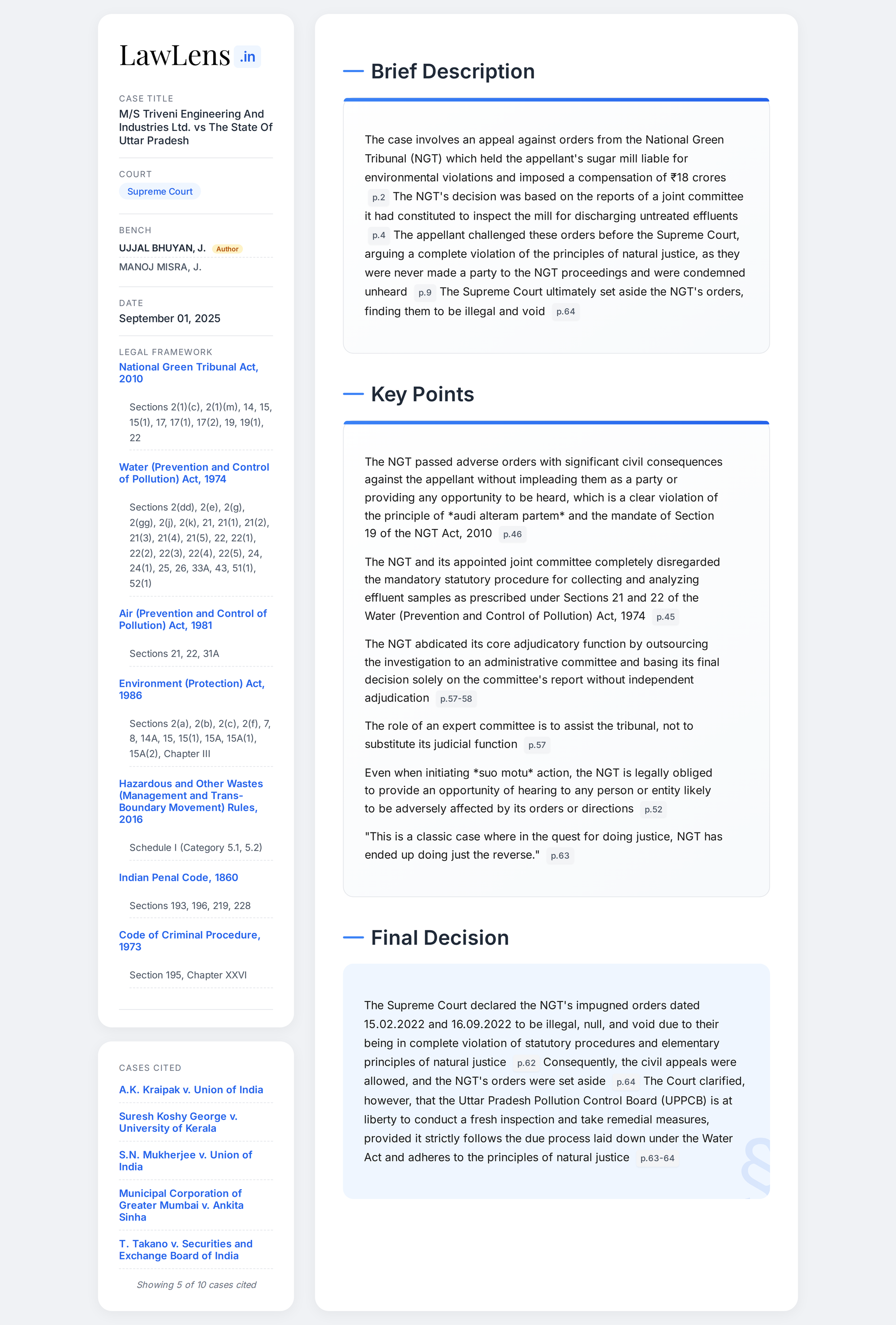 Triveni Engineering and Industries Ltd. vs State of Uttar Pradesh 2025 INSC 1060 -S.19 NGT Act - Ss.21,22 Water Act