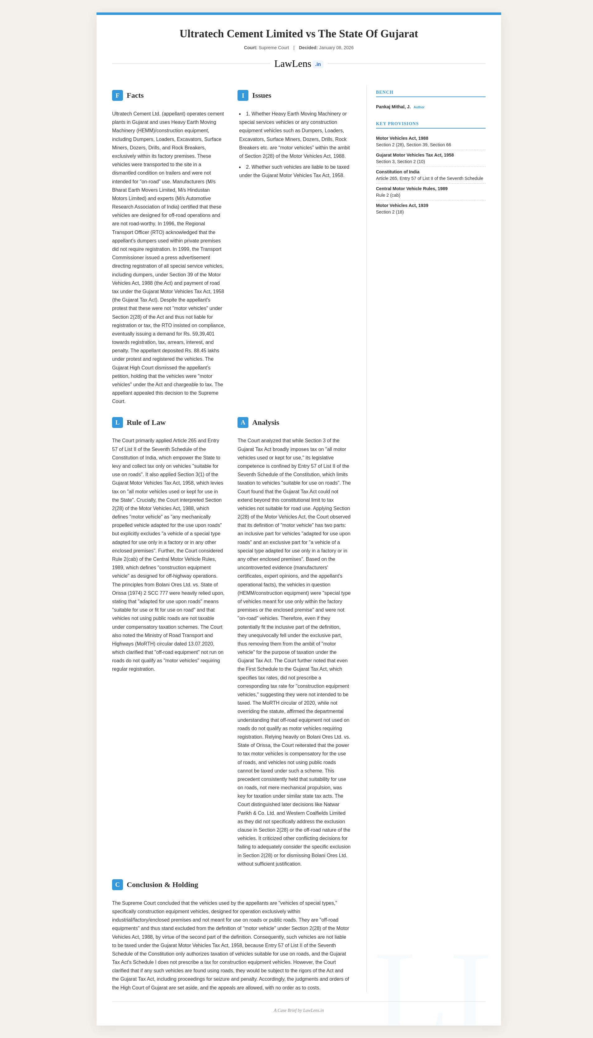 • Case name: Ultratech Cement Ltd. v. State of Gujarat & Ors.