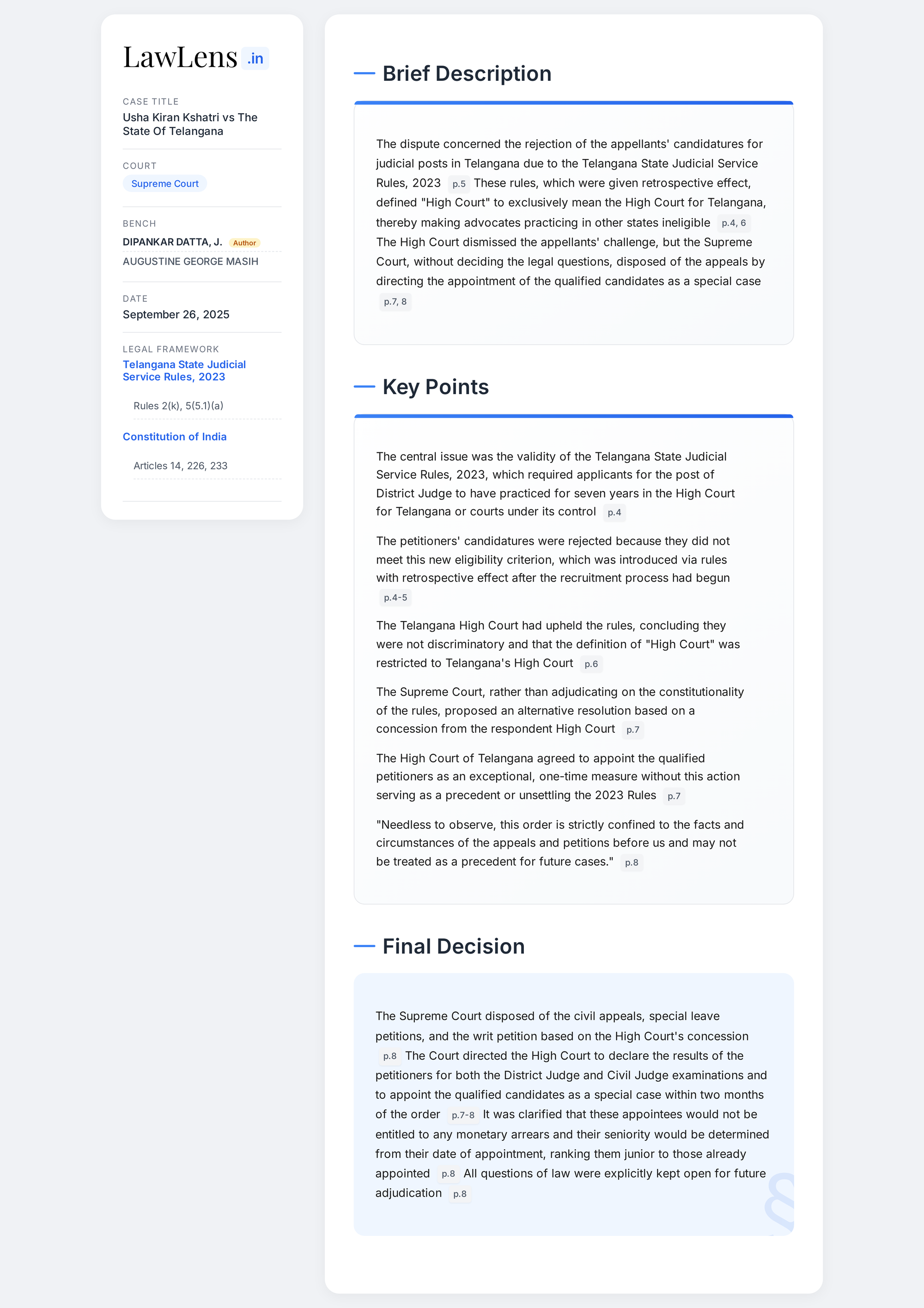 Usha Kiran Kshatri vs State of Telangana 2025 INSC 1169 - Judicial Service