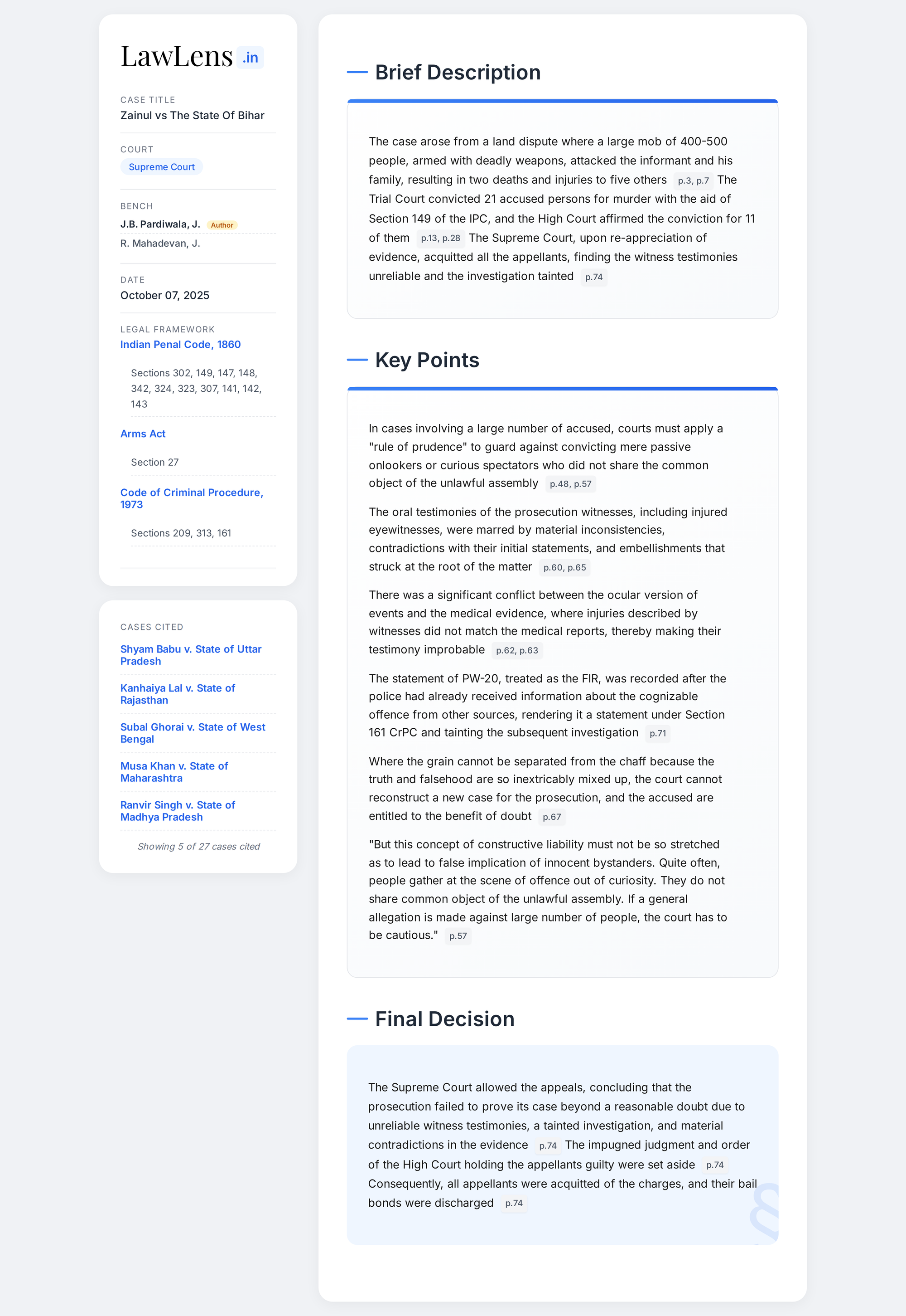 - Indian Penal Code, 1860: Sections 141, 142, 143, 147, 148, 149, 302, 307, 323, 324, 342